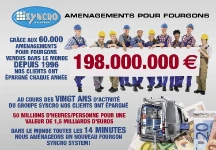 Chaque année, grâce à des fourgons aménagés avec toujours plus d’efficacité par les revendeurs et les installateurs Syncro, les clients Syncro épargnent des sommes très importantes : en calculant un gain de temps journalier de trente minutes, on obtient un total de 198 millions d’euros chaque année ! En partant de 1996, l’épargne se chiffre à 1,5 milliards d’euros.