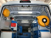 Nous voyons enfin le gyrophare avec embase magnétique, indispensable si le fourgon doit opérer dans des espaces publics.