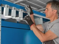 La barre en aluminium à coulisse modèle Syncroblock peut loger une vaste gamme de crochets, sangles, ressorts, anneaux et profils en caoutchouc. Les divers composants peuvent être combinés entre eux de façon flexible et peuvent glisser librement sur toute la longueur. Elle peut être montée aussi bien sur la carrosserie du fourgon que directement sur l’aménagement Ultra. Grâce au profil postérieur, le montage sur l’aménagement s’effectue à l’aide des vis prévues à tête carrée, sans devoir perforer la barre et en utilisant les trous déjà présents dans l’aménagement Ultra.