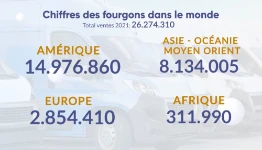 Le total des ventes de véhicules utilitaires légers dans le monde en 2021 était de 26.274.310, dont 14.976.870 en Amérique, 8.134.005 en Asie, Océanie et Moyen orient, 2.854.410 en Europe et 311.990 en Afrique.